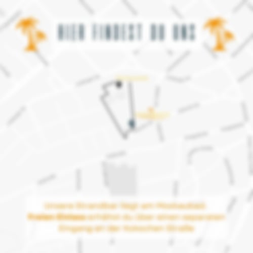 Ihr findet uns direkt am Moskaubad im Stadtteil Wüste - auf 1.500qm bieten wir zahlreiche Sitzgelegenheiten im Grünen. Ihr könnt auf Liegestühlen, balinesischen Himmelbetten oder in Loungemöbeln und Strandkörben im Sand bei entspannter Musik Sonne tanken oder in den Abendstunden bei einem Sundowner-Cocktail den Tag ausklingen lassen. Neu geschaffene überdachte Bereiche bieten Euch Wetter- bzw. Sonnenschutz.