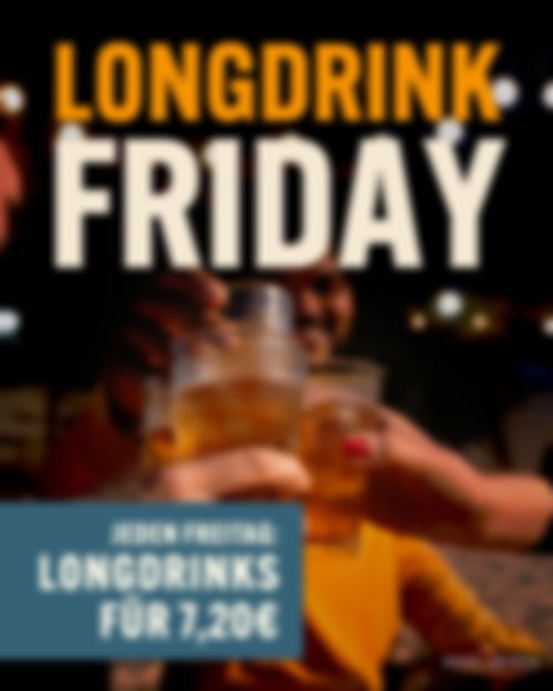 Am Longdrink-Friday könnt ihr genüsslich ins wohlverdiente Wochenende durchstarten. Unsere Longdrinks bieten wir Euch an diesem Tag zum Vorzugspreis von nur 7,20€ an. Cheers! 🥰